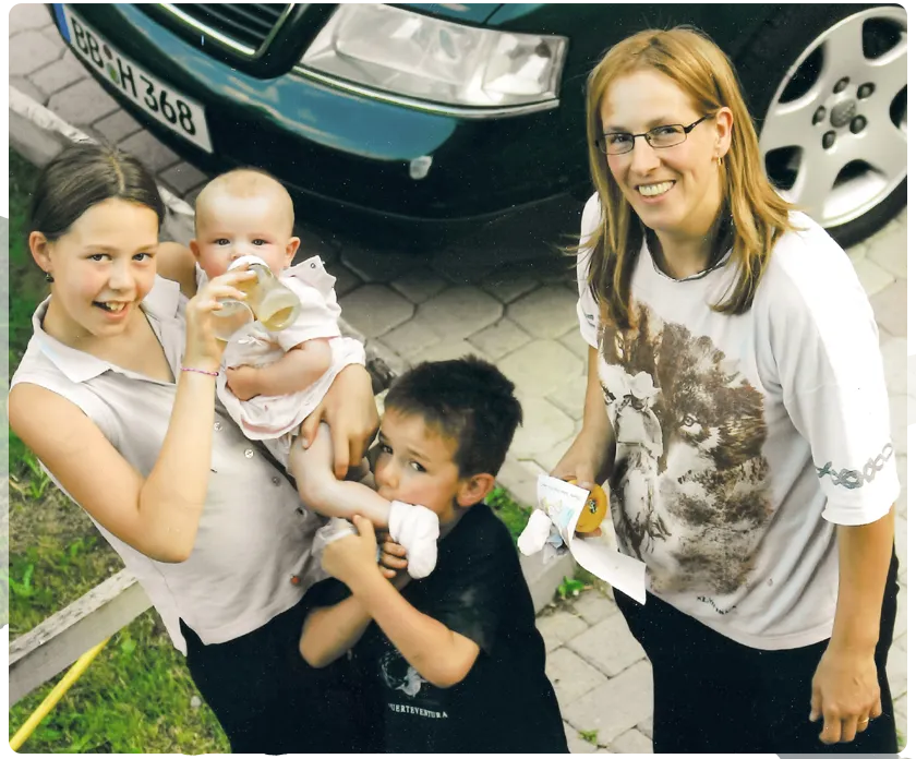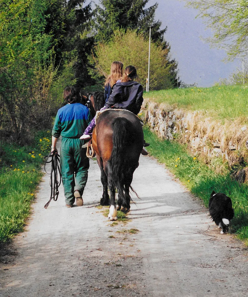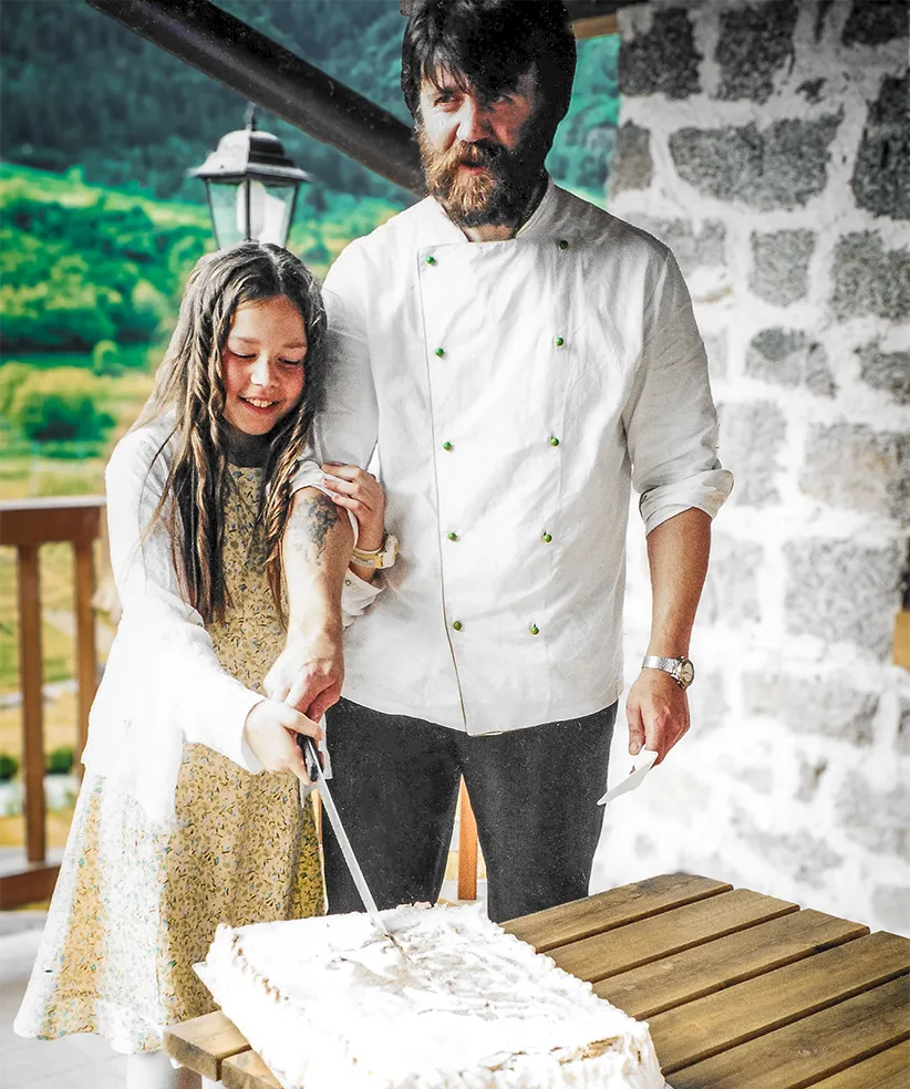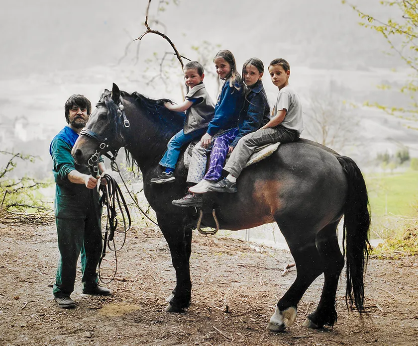 Con Fabrizio Franceschi, da Fiavè arrivato a Cavizzana, cuoco e allevatore, sua moglie Lina, anima della Locanda e i figli Saverio, Vittoria, Gisella, Martina e Giulio.